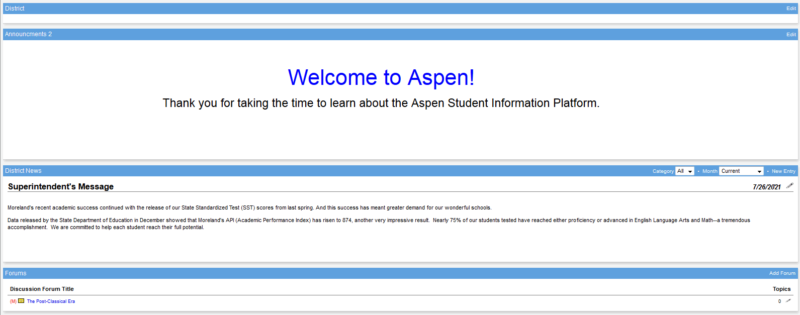 The homepageClosed the first page you see after logging on to Aspen is the first page you see after logging on to Aspen. It is the first page listed on the Pages tab.