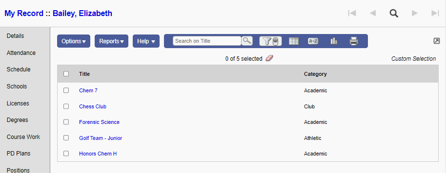 - Click the My Info tab, Groups side-tab. The list of your groups appears:
