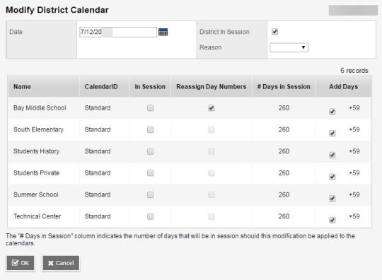 There will be days in a district or school’s year that need to change from 'in session' to closed, or closed to 'in session'. For example, if your district closes due to a snow emergency, you change the calendar to update the days in session.